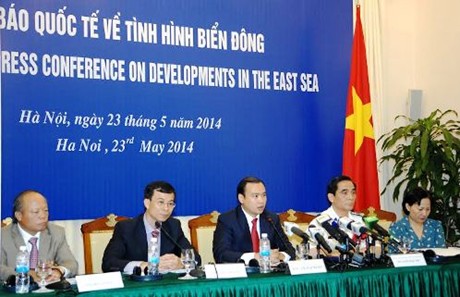 在记者会上, 越南外交部发言人黎海平说: “自越南5月7日召开有关中国海洋石油981钻井平台在越南海域非法开钻作业的国际新闻发布会,越南一直保持克制,通过一切和平措施和对话渠道 以和平解决东海问题,但中方却在钻井平台周围海域增加部署船只,包括军舰和飞机,对越南海上维权执法力量施压和威胁。