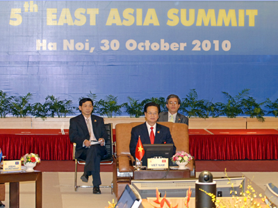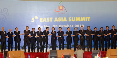 10月30日在越南河内,第五届东亚峰会在越南政府总理阮晋勇主持下正式开幕,东盟各国及中国、日本、韩国、澳大利亚、新西兰、印度等对话伙伴国领导人前来出席。