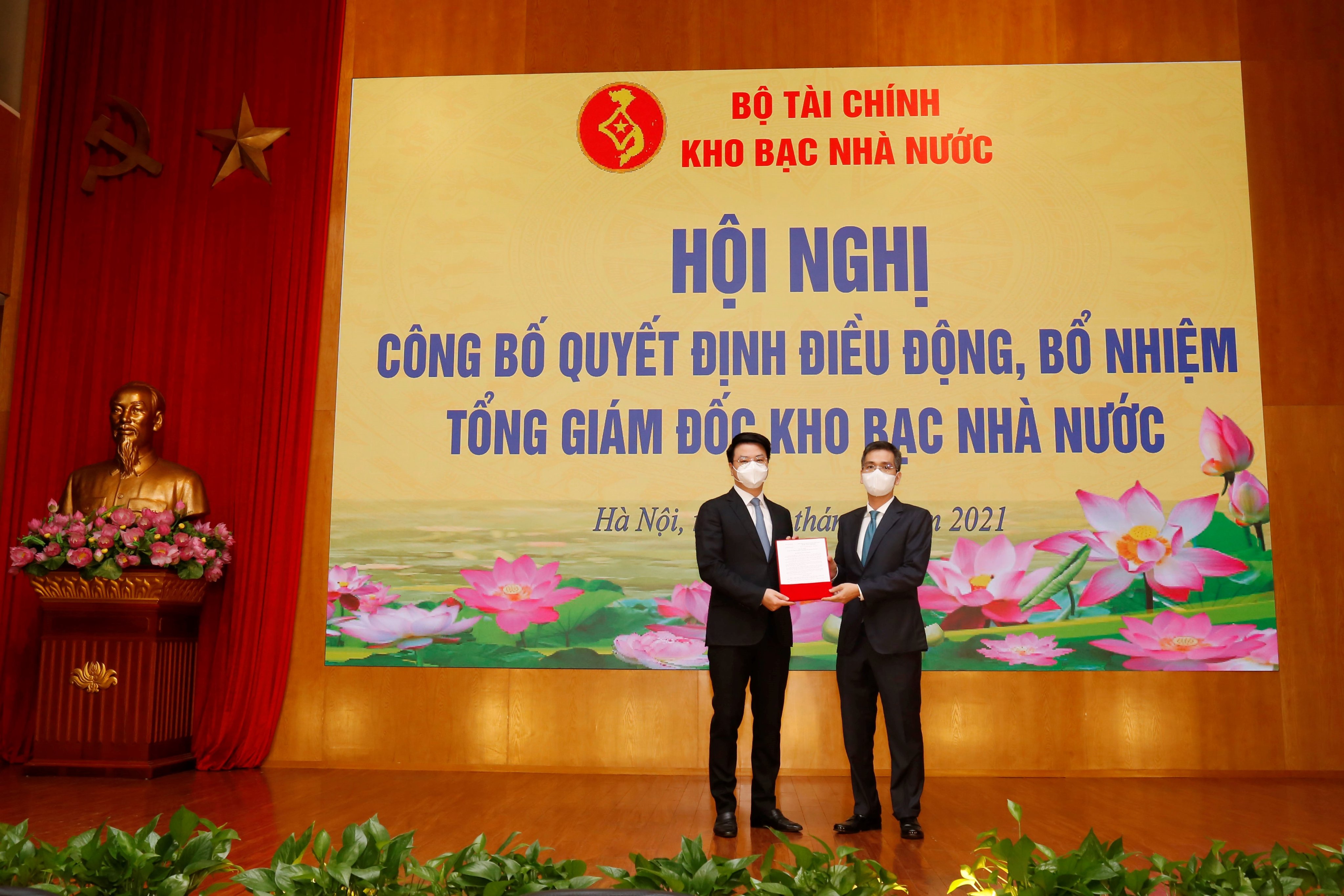 新任国库总经理陈君(左)接受任命决定。 图片:VGP