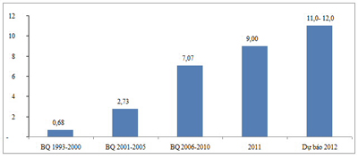 2012年,尽管世界经济衰退,但越南上半年侨汇收入已超过 60亿美元,预期全年侨汇收入或突破110亿美元,创新高。