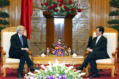 政府总理阮晋勇与澳大利亚外长陆克文——图片:政府门户网站 |