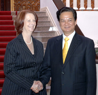 当天,国家主席阮明哲会见了澳大利亚总理朱莉娅吉拉德。