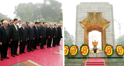党、国家领导人对已为祖国增添光彩的胡志明主席深表尊敬并怀念他老人家为党和民族光荣革命事业所立下的伟大功劳。