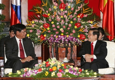 接见老挝总理时国家主席阮明哲对越老政府间合作协议内容表示高度评价,特别赞赏两国近年来在经济合作发展方面所取得的成果。国家主席相信,以越老良好的政治、外交关系, 两国日后的经贸合作必定获得突破发展。