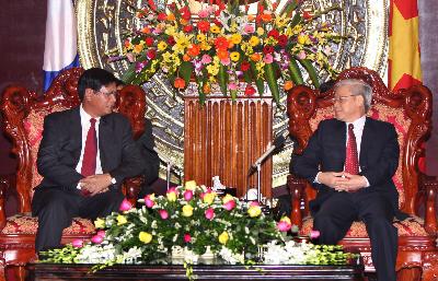 国会主席阮富仲与老挝总理 |