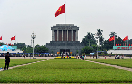 照样,每到国庆节(9月2日)全国各地广大人民纷纷到胡志明陵墓上香 |