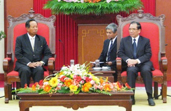 农德孟总书记重申,越南党、政府和人民的一贯政策是为各自国家人民的利益、为了地区和世界的和平、稳定、合作、发展而一向重视进一步发展与中国、老挝、柬埔寨三个兄弟邻国的睦邻友好关系,。