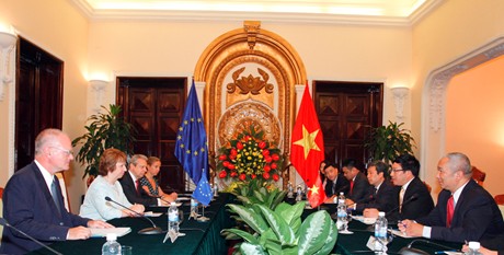 会谈上,范平明副总理高度评价欧盟及欧盟各成员国为越南经济发展给予支持和帮助,感谢欧委会承诺在2014-2020年间向越南提供4亿欧元的无偿援助(比2007 -2013年阶段增加30%)。