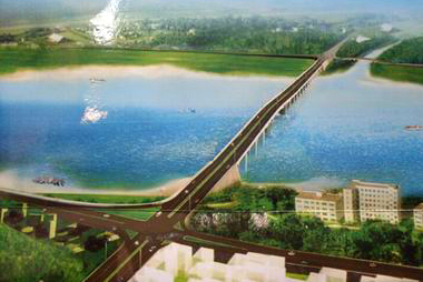 二号边水大桥总长2940米、宽25米、4条车道,设计速率80km/h。
