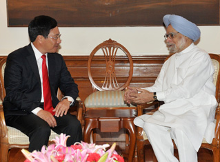 会见中,印度总理重申,视越南为印度向东看政策的支柱,并承诺将致力加强与扩大越印战略合作伙伴关系;肯定支持越印两国政府经济与科技合作联合委员会第15次会议所取得的结果。他建议双方应深化两国在经济、国防安全、科技、文化、教育培训等领域的战略合作伙伴关系。