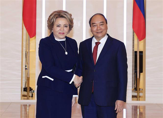 越南国家主席阮春福会见了俄罗斯联邦委员会主席瓦莲金娜•马特维延科