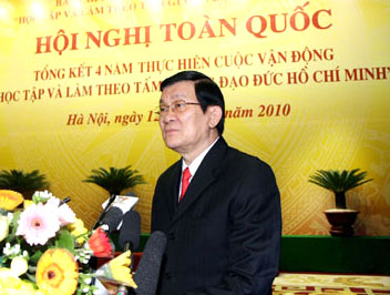 农德孟总书记在会议上发表讲话时表示,4年前(2007年2月3日),在越南共产党成立77周年之际,越南共产党发动了全党、全军、全民开展“向胡志明主席道德榜样学习和工作”运动。