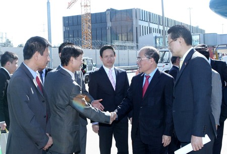 越南驻瑞士大使馆工作人员在日内瓦国际机场迎接国会主席阮生雄一行 |