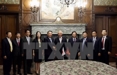 郡司彰对越日关系在经济、政治、文化等领域的良好发展表示高兴。其中,日本天皇明仁和皇后今年2月访越就是两国友好关系的象征。郡司彰希望越南国会、日本参议院和两国议员加强交流与合作,面向于2018年举行庆祝越日建交45周年各项纪念活动。