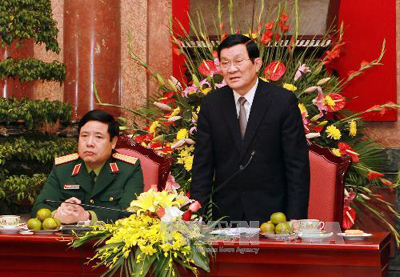 国防部领导人就2011年军事国防任务执行结果向国家主席张晋创报告。