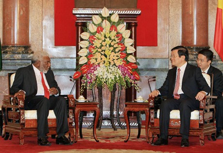 张晋创主席欢迎瓦努阿图总理纳图曼访问越南,感谢瓦努阿图对越南参与重要国际组织和事务给予支持,张晋创主席相信纳图曼总理此访将有助于越瓦两国开展更为广泛的合作。
