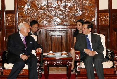 越南国家主席阮明哲和克里斯蒂安·蓬斯莱先生(Christian Poncelet)——图片:越南通讯社 |