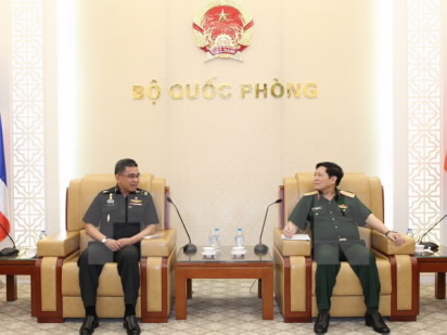 当日,Chaichan Changmongkol与越南国防部副部长阮志咏举行会谈。