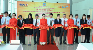 越南投资发展银行与越南工商银行负责新山一国际机场退还增值税柜台。