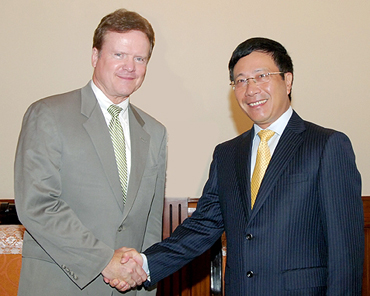 范平明部长表示高兴地看到,越美关系过去以来不断向前发展。他肯定在展开开放、多边化、多样化、积极主动融入国际的对外政策,越南一直视美国为具有战略性意义的一流伙伴。
