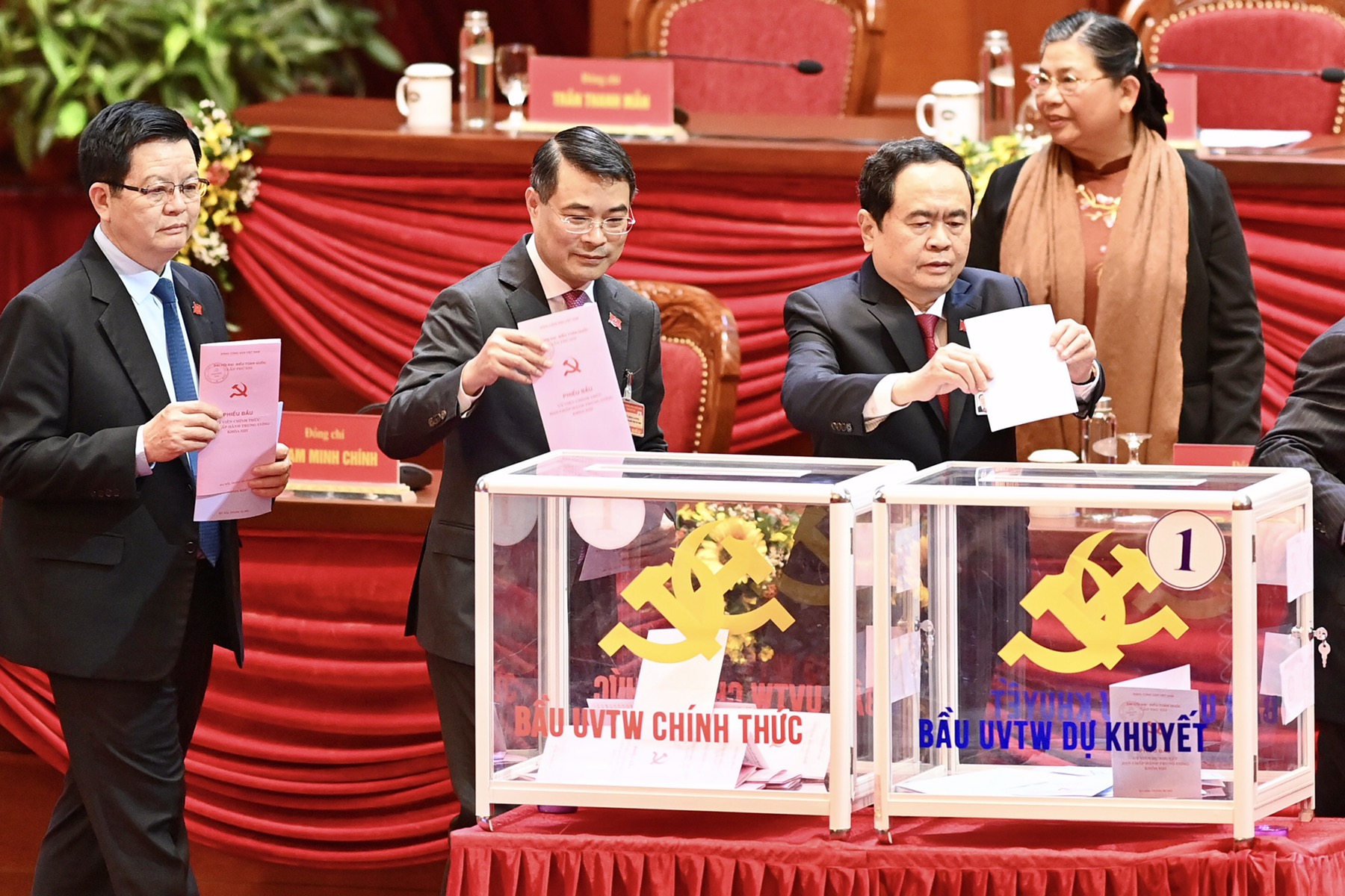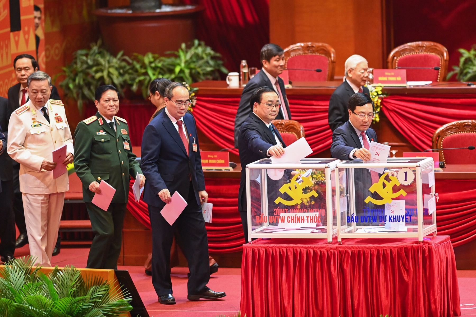 越南党、国家领导人投票选举越共第十三届中央委员会。图片:VGP |