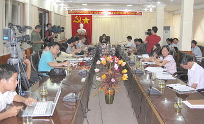 奠边省政府与外国媒体界进行工作交谈——图片:奠边府报 |