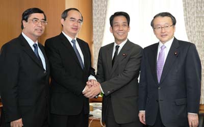 阮善仁副总理对日本政府给越南提供ODA资金并与越南合作建设南北高速公路、南北高速铁路及、和乐高科技区等3个项目,日本外交部帮助越南制定越南宇宙中心建设项目的可行性报告表示感谢。