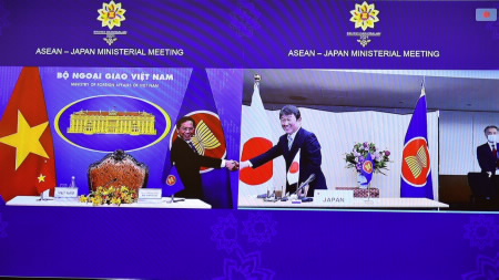 8月3日下午,越南外交部部长裴青山以东盟-日本关系协调国代表身份与日本外相茂木敏充共同主持东盟-日本外长会议(视频会议)。