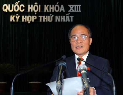 国会主席阮生雄接任时发表讲话说,将继承第12届国会的经验和成果,为本届国会的成功做出最大的努力,为越南国家的和平稳定与发展作出贡献。