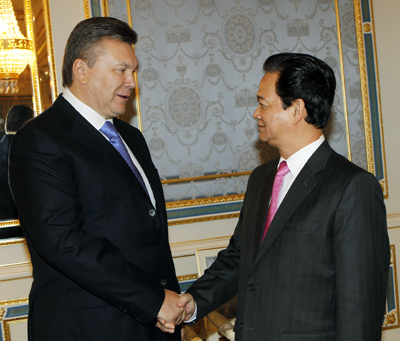 会见维克托•亚努科维奇总统时,阮晋勇总理重申,巩固和发展同乌克兰在各方面的友好合作关系既是越南的一贯主张,又是外交政策优先方向之一。