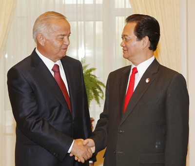 越南政府总理阮晋勇和乌兹别克斯坦总统伊斯兰•阿卜杜加尼耶维奇•卡里莫夫——图片:政府门户网站 |