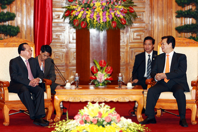 阮晋勇总理和柬埔寨副总理兼外交与国际合作部部长贺南洪就越-柬边界勘界立碑问题深入交换意见,双方一致认为,越-柬两国应本着传统友谊、互相信任的精神,在勘界立碑工作中进一步密切配合,如期实现两国领导人确定的2012年底完成边界勘界立碑工作的目标。