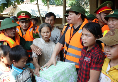 阮晋勇代表党、国家向灾中失去亲人以及正在日夜奋战克服灾害困难的群众表示深切慰问。