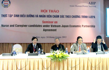 4月24日在河内,越南医护协会配合日本亚洲人力资源组织 (Asia Human Network-AHP)根据越日经济合作协定举行医护人员实习研讨会。