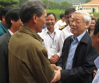 阮富仲总书记探望东清乡居民——图片:vov.vn