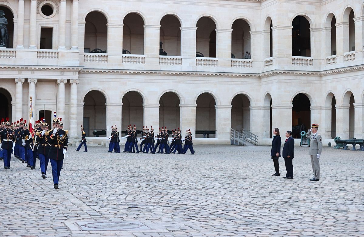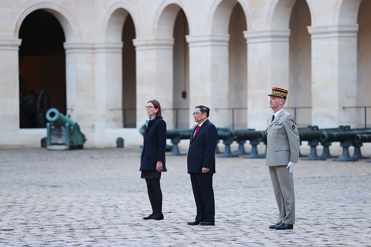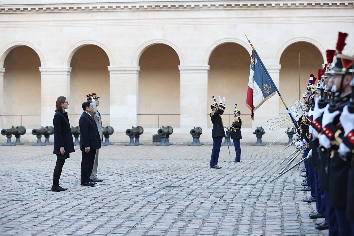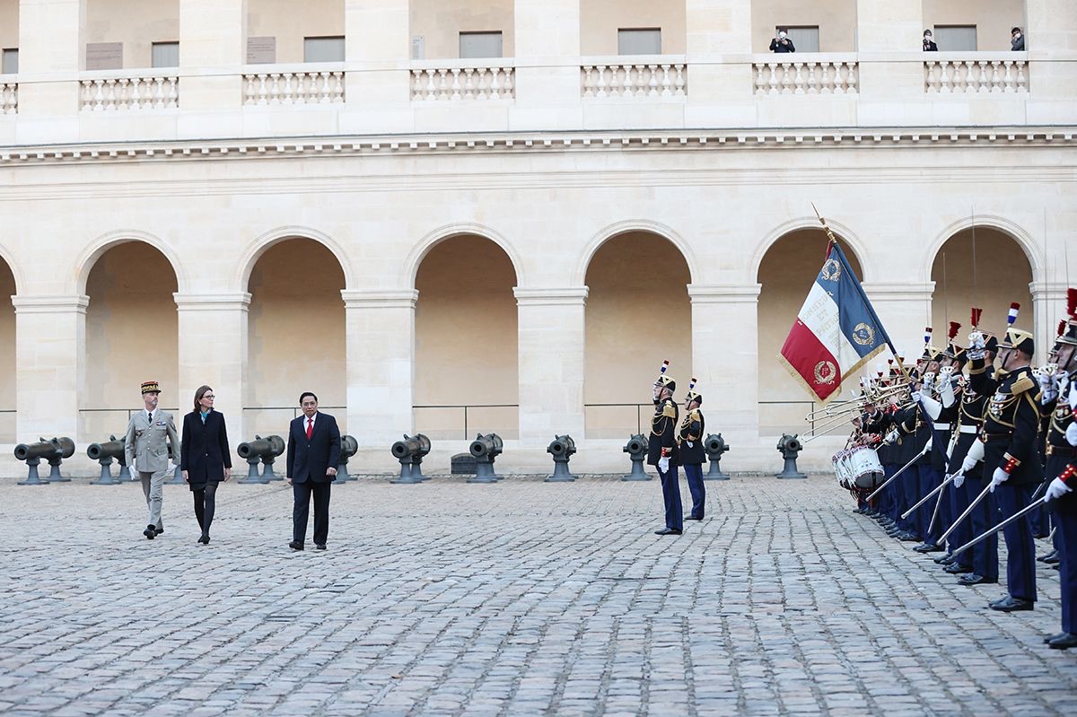 范明正总理和越南代表团对法国进行正式访问,欢迎仪式在巴黎荣军院隆重举行。图片:越通社 |