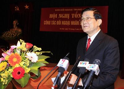 张晋创同志要求提高2011年人民对外工作效益,扎扎实实地推动对外关系,尤其是加强与周边各国人民、传统朋友、世界进步力量的关系,积极主动地搞好外宣工作,增进世界人民对越南的革新开放的了解与支持,提高其在多边论坛上的活动质量,全面维护国家和民族的利益。