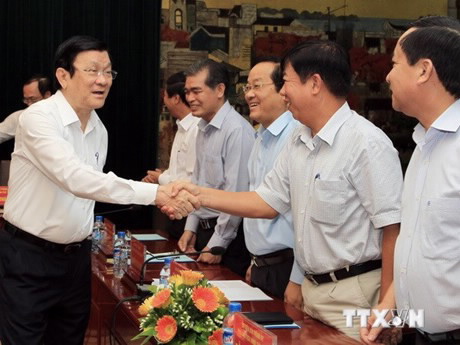 张晋创主席与海防市领导班子举行工作会议——图片:越通社 |