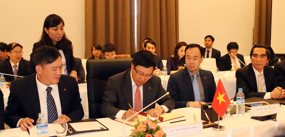 政府副总理、外交部长范平明签署会议备忘录。图片:VGP |