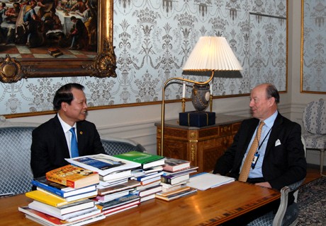 瑞典议会议长佩尔·韦斯特贝里欢迎武文宁副总理访问瑞典,他说,武文宁副总理的访问正值越南-瑞典建交45周年之际(1969 -2014),有利于越瑞传统友好关系的发展。韦斯特贝里强调,瑞典议会重视发展与越南的关系。