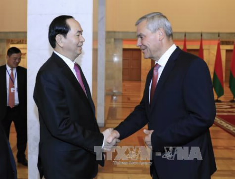 越南国家主席陈大光会见白俄罗斯国民会议代表院主席弗拉基米尔·安德烈琴科