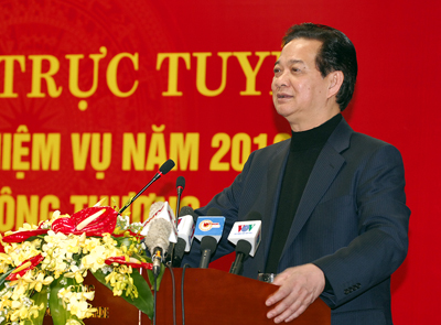 阮晋勇总理会上发表讲话说,工商部要抓好实施2013年国民经济与社会发展计划各项指导措施的落实,首先要着力化解困难,促进企业生产经营发展,同时强化进出口贸易管理效率,把扩大出口,抑制贸易逆差摆在今年工作的重要位置。有效推进工业产业结构调整,增加产品科技含量,提高越南商品国际竞争力。