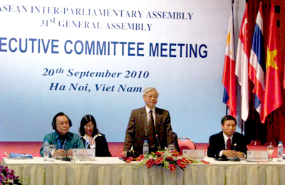 第31届东盟议会联盟常委会会议在本届主席越南国会主席阮富仲主持下于9月20日召开,AIPA成员国议会代表及特别观察员与会。