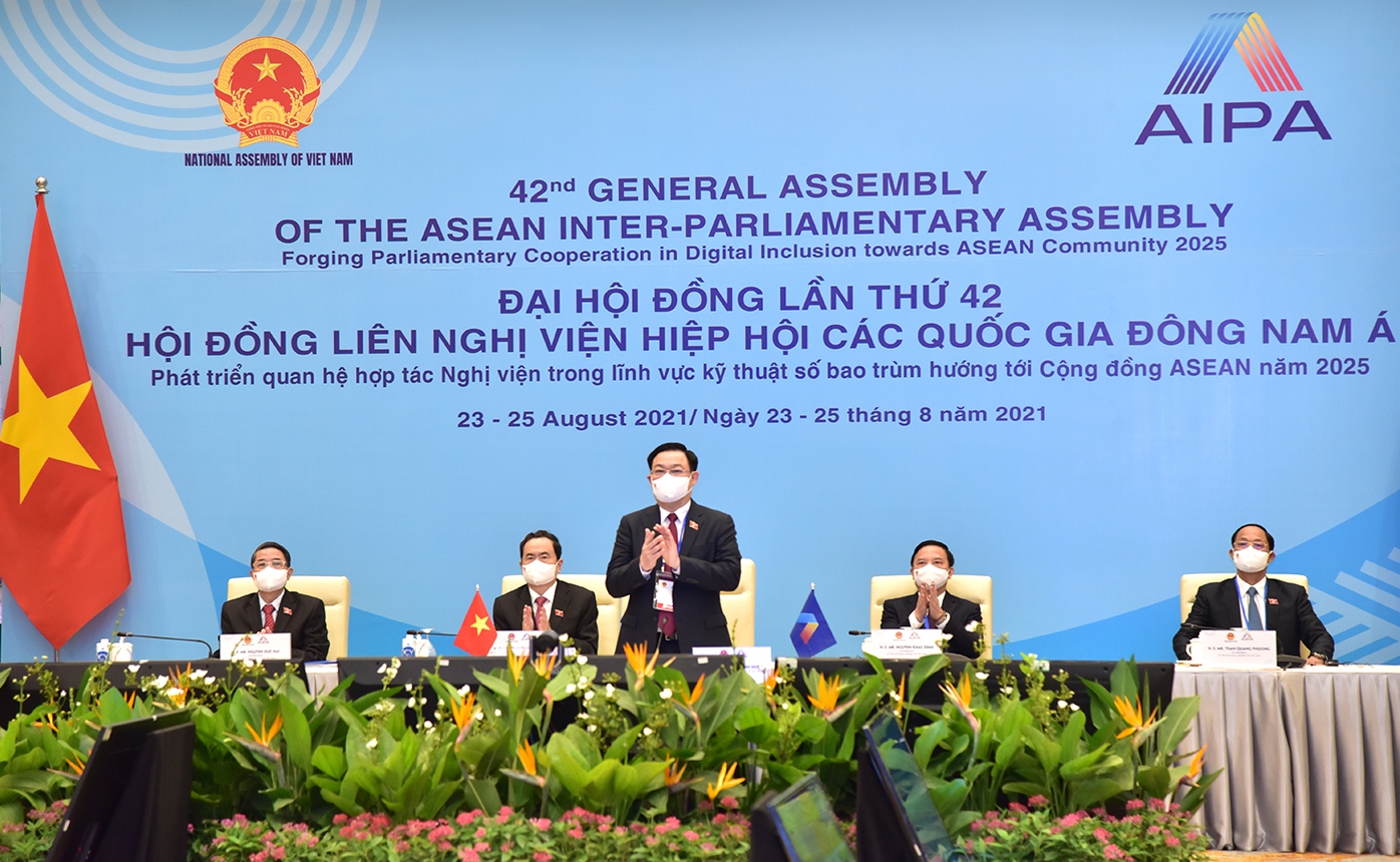 越南国会主席王廷惠率领越南代表团以视频方式出席第42届东盟议会联盟大会 -图片:VGP |