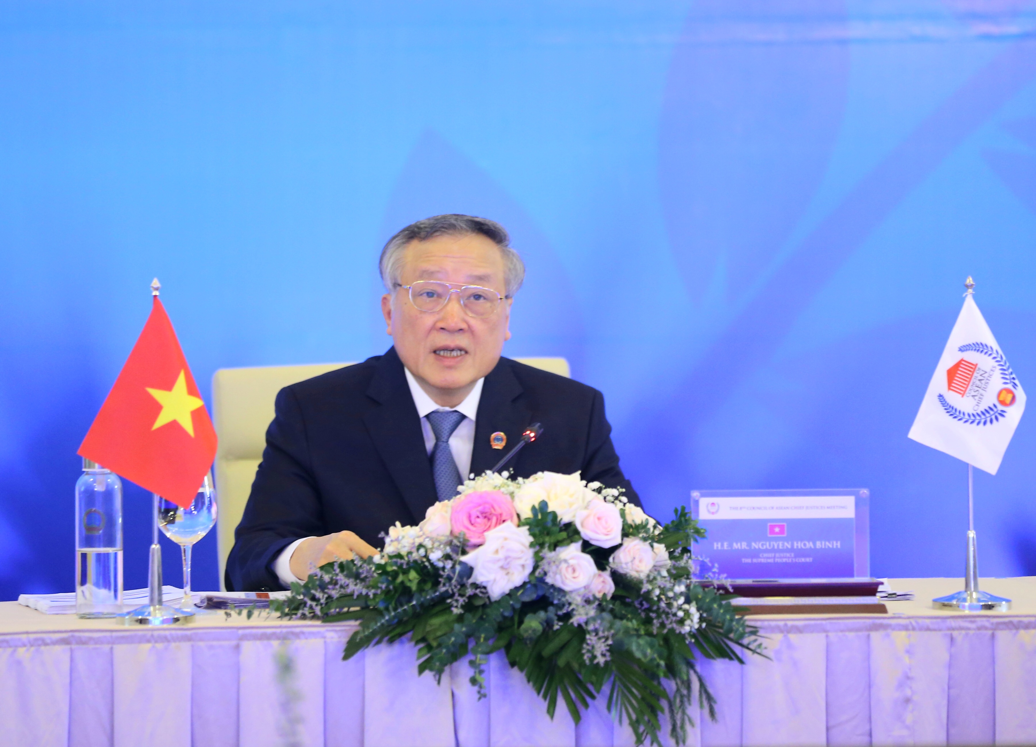 会上发表开幕式致辞时,阮和平指出,从正式成为东盟的附属机构以来,东盟首席法官理事会不断完善,加强运营,扩大与东盟内外体制及组织合作,其目的在于促进民主,提高国家管理效率,推动实施法治国家原则,加强东盟和平、稳定与繁荣。