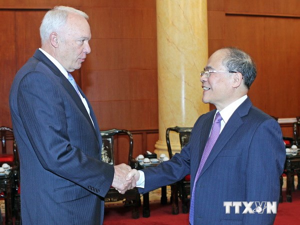 越南国会主席阮生雄美国共和党议员、众议院教育和劳动力委员会主席约翰·克莱恩 |