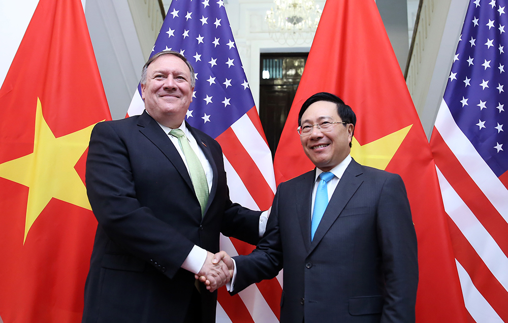 应越南政府副总理兼外长范平明的邀请,美国国务卿蓬佩奥(Michael Pompeo)于7月8-9日对越南进行正式访问。这是美国国务卿蓬佩奥上任以来首次访问越南,也是他出访的东南亚第一个国家。