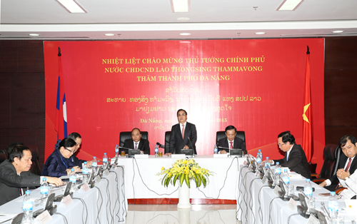 老挝总理通邢·塔马冯与岘港市领导人举行工作会议——图片:VGP |