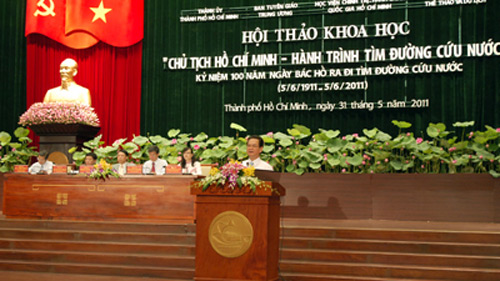 政治局委员、书记处书记、中央宣传部部长丁世兄在研讨会开幕式上致词表示,自从离开家乡赴海外寻找救国之路那一日起,胡志明主席踏上了艰苦卓绝和非常伟大的寻求革命真理之程,此行程永远写入越南民族的历史,掀起越南人民争取民族解放和国家统一斗争。