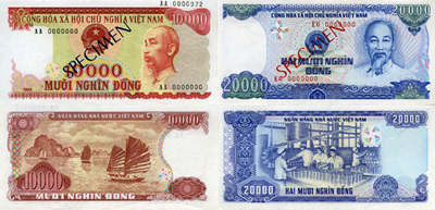 9月28日发布的第293/TB-NHNN 号通知表示,实施政府总理于2012年9月17日颁发的第1285/QĐ-TTg的决定,越南国家银行公告,自2013年1月1日起在越南领土上终止流通1万及2万越盾面额的棉质(COTTON)钞票。